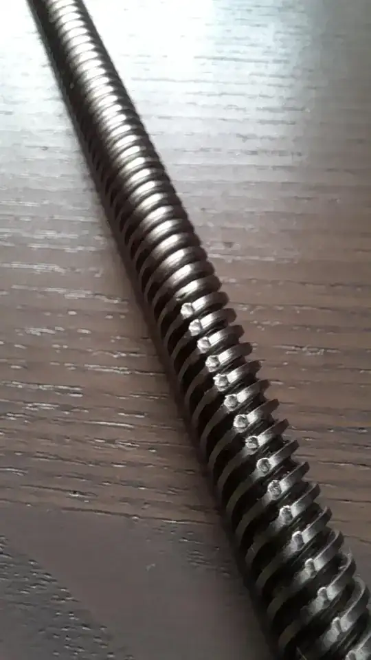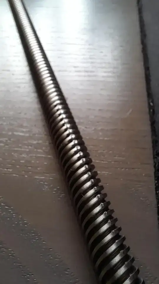A couple of days ago I got my first 3D printer: Creality 3D Ender 3 Pro. I finished assembling it last night. I booted it up, but ran into problems (which I guess is not a common thing for a beginner in 3D printing). After booting and running the motors, it seemed that the lead screw got stuck about halfway down the Z-axis. I heard a rattling sound. So I turned the 3D-printer off. I disassembled the lead screw and applied some Lithium lubricant on it. But the problem persisted. Looking more closely at it, I noticed some notches on the lead screw:
