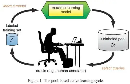 Is this correct? I am mostly concerned about step 3) Should we retrain on all the data on every iteration? It seems like it could get computationally slow, but on the other hand if we don't evaluate every document how would we know which one is the most helpful to get labelled?