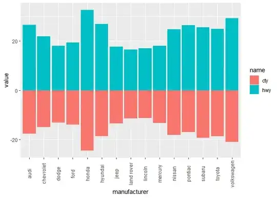 geom_col(aes(x=manufacturer, y=-cty, fill="cty")) +