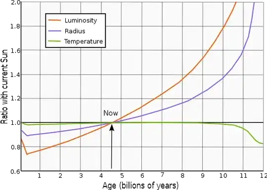 The solar constant is not quite constant. While it doesn't change much at all from year to year, or even century to century, it changes a lot over the course of billions of years. Young G class stars produce considerably less energy than do middle aged G class stars, which in turn produce considerably less energy than do older G class stars. When our Sun was young, it produced only 75% or so as much energy than it does now.