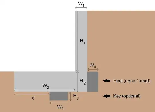 The structural engineer has designed a cantilever with a large heel, as usual, but on checking, it's hard to excavate under the retained bank to put a "heel" in. On the other hand, it already has a very large "toe" in the design, because there's a path going in front of the wall, so making the "toe" more substantial or adding a "key" beneath it to stop sliding would be much easier.