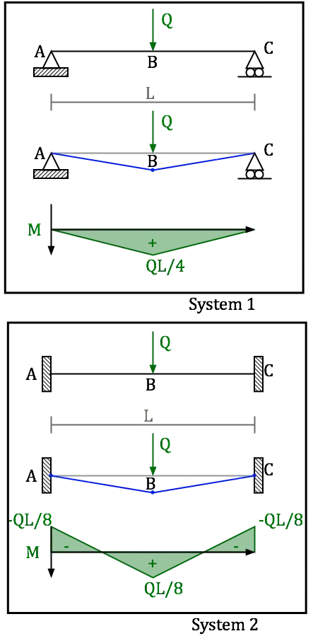 For example, take a look at the following static systems. Assume they have the same length and the same (constant) cross-section. Thus an equal allowed bending moment $M_u$.