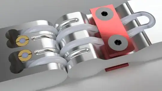 I'm sure that I'm far from the first person to have had this idea, but having no clue about its proper name nor about how to describe it, I'm unable to find anything on the net. I guess it's best described as a kind of flexure, but what exactly? Has this mechanism found any real world applications?