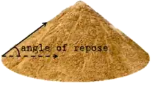 The slope angle of such slopes is constructed to be less than the angle of repose for the material used in the slope. The angle of repose is the great angle to which granular materials can be dumped without slumping.