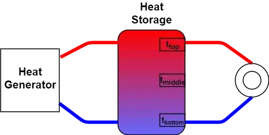 There is a heat storage tank that is directly loaded from the top and the heat is also taken from the top. The colder water from the heating circuit return flow enters the heat storage tank at the bottom. This creates a layered water temperature in the heat storage tank.