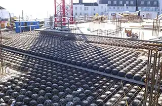 Also, you'll notice that there are little layers of concrete between the cans. Ideally, one would want these larger so that the "webs" of concrete can transfer force between the layers. Having essentially two separate layers of concrete ~3" thick isn't strong at all.