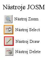 - 4. Nástroj "Smaž - Delete" maže vybrané objekty, nebo objekt, na který kliknete. Pozor! Mazání se provede již při vybrání nástroje, takže aktuálně vybraný objekt je vymazán! Dále maže pouze při každém dalším kliknutí na objekt.