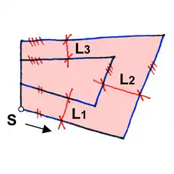 | Ein anderer Anfangspunkt S sowie Tagging von dem Punkt P um eine Bezugskante für die Berechnung