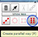 Eine zweite Konstruktionslinie parallel zu der ersten wird gezeichnet (Potlatch2 shortcut "P" )