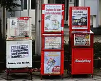 Punkt an die Stelle des Automaten und füge amenity=vending_machine + vending=newspapers hinzu.