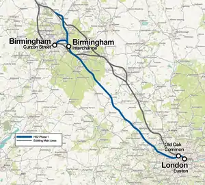 The northern limit for Phase 1 will be a connection onto the WCML north of Lichfield. This part of the line would be operative with compatible high-speed trains moving onto the classic track WCML while the western leg of Phase 2 is being built.