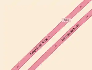 En el nodo de unión de la autopista/autovía con la vía de enlace se añade: