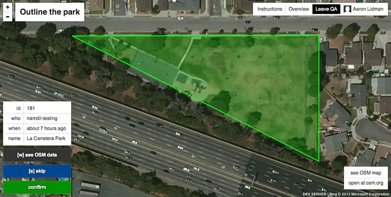 Technically, OSMLY took in GeoJSON data and makes sure geometry is valid, simplifies, flags obviously difficult items, adds bounds for each item, and converts everything to a sqlite database ready to be served up to the world. A simple server takes care of routing requests from the browser to database queries and returning results. Once the user has received a new feature the surrounding area is download from an OSM server and those results are filtered for relevant geometry. Then it's all displayed on the map. From there it gets a bit more complex depending on the user's actions.