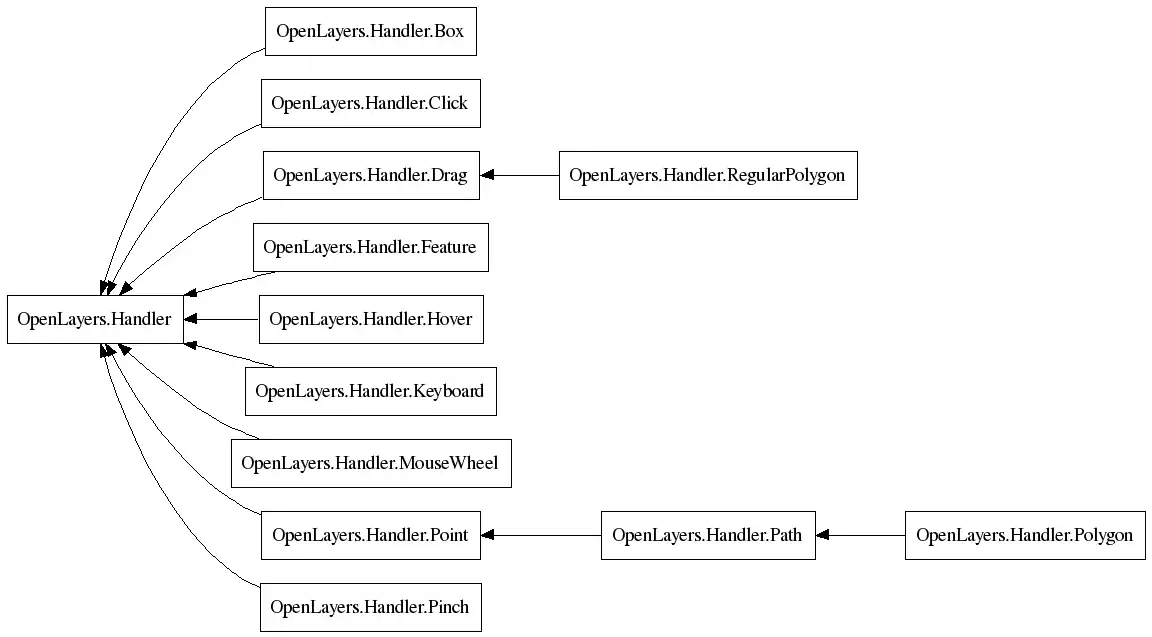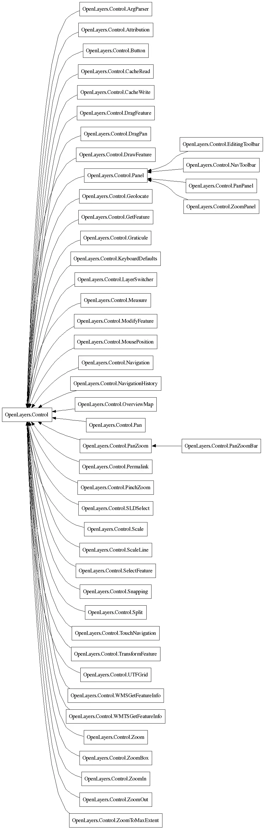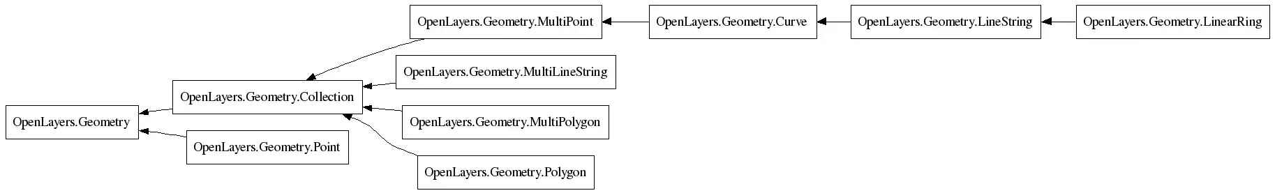 Class hierarchies of OpenLayers-Classes. Release 2.12. Only classes which are part of an inheritance are mentioned.