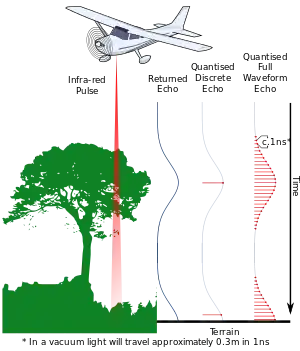 In collaboration with federal, state, and local partners such as the United States Forest Service and Federal Emergency Management Agency, the USGS 3DEP Program offers up to 50% cost-match for LiDAR data collections. To produce a digital elevation model, Light Distance And Ranging technology uses lasers from an aerial platform such as an airplane. Individual reflected light returns form a "point-cloud", usually classified into groupings of ground, vegetation, water, and building points. Point clouds, often stored in compressed .LAZ file format as tiles of a larger collection area, are available for download from the National Map Downloader(elevation source data) or online viewing using tools such as Cesium and Potree now made possible through the development of Entwine Point Tiles file format and collaboration, see [ https://usgs.entwine.io/].