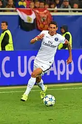 Ángel Fabián Di María (Spanish pronunciation: [ˈaŋxel faˈβjan di maˈɾia]; born 14 February 1988) is an Argentine professional footballer who plays as a right winger or attacking midfielder for Primeira Liga club Benfica and the Argentina national team. He is known for his dribbling, playmaking skills and unique finishing.[4][5][6][7][8][9][10]