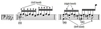 Two examples of Chopin's original fingering (bar 3 and bar 7)