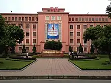 Đống Đa (literally Banyan Heap; Vietnamese pronunciation:[ɗəwŋ˧˥ ɗaː˧˧]) is one of the four original urban districts (quận) of Hanoi, the capital city of Vietnam.[3] It is bordered by Ba Đình to the north, Hoàn Kiếm to the northeast, Hai Bà Trưng to the east, Thanh Xuân to the south, and Cầu Giấy to the west. The district currently has 21 wards, covering a total area of 9.95 square kilometers.[1] It is the most populous district in Hanoi. As of 2017,[1] there were 420900 people residing in the district, the population density is 42302 inhabitants per square kilometer, 18 times higher than the overall density of Hanoi. Dong Da district is home to various enterprises and many of Vietnam's most prestigious universities[4] such as Hanoi Medical University, Foreign Trade University, University of Transport and Communications, Thuyloi University.
