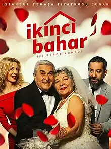 İkinci Bahar (English: Second Spring) is a theater play adapted into Turkish from the work of Alfonso Paso. The play, which premiered in 2018, featured Cihat Tamer and Bedia Ener in the cast.[1][2] In the following years some of the cast were replaced by newly joined actors such as Suzan Aksoy, Kerem Poyraz Kayaalp, and Selin Köseoğlu.[3][4][5][6][7]