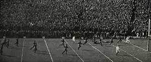 - ↑ The game account published by the Chicago Daily Tribune credited Molenda with the third touchdown.[34] The AP account, and accounts in other papers, credited Molenda with the same touchdown.[32]