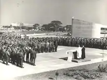 Opposition funding of the 1962 elections would not make sense if the coup had already been decided, and there were efforts to move the president away from the left.[65] The conspiracy gained strength after the restoration of presidentialism in January 1963.[66][lower-alpha 5] After the Sergeants Revolt and the request for a state of emergency in late 1963, many officers became suspicious of the president's intentions and joined the conspiracy with a “defensive” intent.[67] The passage of the PSD to the opposition, on March 10, 1964, was considered a signal by civilian and military conspirators. The radicalization throughout the month fueled the assumption that the president would carry out a self-coup. Parliamentarians came to agree with the conspirators.[18] In military memory, the events led to the accession of the undecided and formed the trigger for the coup.[68]
