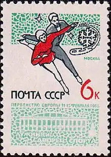 A Soviet stamp dedicated to the 1965 European Figure Skating Championships