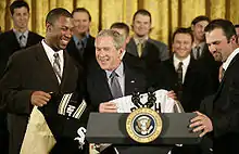 Victorious White Sox players being honored at the White House by President George W. Bush.