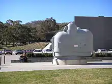 The self-loading gun mount weighs about 60.4 long tons (61.4 t) including two drums under the mount holding 40 rounds of semi-fixed case type ammunition. The gun fires 31.75 kg (70.0 lb) projectiles at a velocity of 2,650 ft/s (807.7 m/s).[3] Maximum rate of fire is 40 rounds per minute.[4] Magazine capacity is 599 rounds per mount.[3] The Mark 42 mount originally was equipped for two on-mount gunners, one surface and one antiaircraft, but the antiaircraft gunner position was scrapped later on when the increasing speed of naval aircraft made manual aiming of anti aircraft weapons impractical. The Mark 45 lightweight (22.1 long tons (22.5 t))[5] gun mount began replacing the Mk 42 mount in 1971 for easier maintenance and improved reliability in new naval construction for the United States Navy.[6]