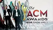 3. "Final Performers and Presenters Announced for the 51st Academy of Country Music Awards". The Academy of Country Music. April 1, 2016. Retrieved April 3, 2016.
