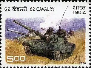 The 62nd Cavalry is an armoured regiment of the Indian Army and was raised by Lt Col RS Butalia on 31 Mar 1957 at Ambala cantonment.[1] Drawn from the existing cavalry regiments of the time, the 62nd Cavalry was recruited from Sikh, Jat and Dogra communities.[4]
