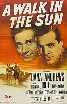 A Walk in the Sun is a 1945 American war film based on the novel by Harry Brown, who was a writer for Yank, the Army Weekly based in England.[5] The book was serialized in Liberty Magazine in October 1944.