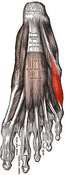 Its function is flexion[3] and abduction of the fifth (little) toe at the metatarsophalangeal joint.[2][3]