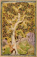 The emperor considered Abu al-Hasan to be particularly special to him and under his care.[1] This is because although Abu al-Hasan's artwork was similar in many ways to his father's with Dutch and English influence, it was considered to be of a higher quality similar to that of older masters in the field.[1][2] Jahangir said of Abu al-Hasan that he had no equal and for the work done on the frontispiece for his memoires, the emperor bestowed the title Nadir-uz-Saman ("Wonder of the Age") on Abu al-Hasan in 1618.[4]