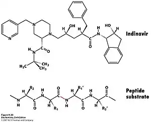 - ↑ Ashraf B, Chi-Huey W (2003). "HIV-1 protease: mechanism and drug discovery". Organic & Biomolecular Chemistry. 1 (1): 5–14. doi:10.1039/B208248A. PMID 12929379.
