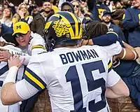 On February 28, 2021, Bowman announced that he would be transferring to Michigan for the upcoming season.[23] Prior to the 2021 season, redshirt sophomore Cade McNamara was named Michigan's starting quarterback, beating out Bowman and five-star freshman J. J. McCarthy.[24] Bowman appeared in the team's game against Wisconsin, the fourth quarterback Michigan used in the game, throwing an interception.[25]