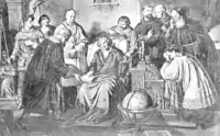 Aleksander Lesser was born in Warsaw in 1814 to Levy Lesser (17911870), a famous trader and banker, and Roza Loewenstein (17901840).[1][3] Lesser's formal study of painting began in the Warsaw Lyceum under Aleksander Kokular before continuing at the Faculty of Fine Arts at the Royal University of Warsaw in 1830–1831 under Antoni Brodowski, the Polish romantic painter.[1] This university was closed by the imperial Russian authorities after the Polish uprising of 1831; thus, between 1832 and 1835, Lesser continued his studies at the Academy of Fine Arts in Dresden, where he studied with Moritz Retzsch and Karl Christian Vogel.[1] Between 1836 and 1846, Lesser studied in Munich under Peter Cornelius, Heinrich Hess, and Julius Schnorr von Carolsfeld; these individuals were prominent representatives of German romanticism who called themselves Nazarenes.[1] In 1843, Lesser became friends with a prominent Polish poet named Cyprian Kamil Norwid (Norwid later emigrated).[3]
