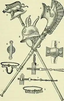 {{cite journal}}: Cite journal requires|journal=(help) - ↑ Waffen für die Götter : Krieger, Trophäen, Heiligtümer. Meighörner, Wolfgang. Innsbruck: Tiroler Landesmuseen, Ferdinandeum Volkskunstmuseum. 2012. ISBN 978-3-900083-40-3. OCLC 829679857.
