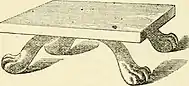 In Ancient Assyria plaques would be used as furniture. The Ancient Assyrians had carved ivory pieces. They were used to make fan handles, boxes, and furniture inlays. The furniture would commonly depict flowers.[31] There was a wide variety of Assyrian chairs. Some chairs had backs and arms, some resembled a footstool. Sometimes Assyrian chairs would be placed so high a footstool was required to sit on them. Chairs and footstool would be furnished with cushions covered in tapestries. Wealthier Assyrians would also furnish their couches and bed frames with tapestries. Poorer Assyrians would have a single mattress instead of a bed. Assyrian tables had four legs, often these legs would be inlaid with ivory. Other metals could be inlaid into chairs and sofas. Households would also have bronze tripods for the purpose of holding vases of wine and water. Some vases were made of terracota, these vases could also be glazed with a blue vitrified substance resembling vases used by the Egyptians.[32] The tripods used to hold these vases had feet shaped to resemble oxen or clinched hands.[33]