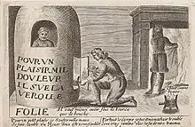 Treatment with mercury vapour. In a small chamber, mercury vapour was inhaled. Illustration of the 17th century