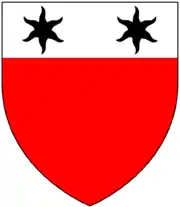 Arms of Prust of Thorry, Hartland: Gules, on a chief argent two estoiles sable[50]