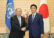 In response to the death of Chinese Nobel Peace Prize laureate Liu Xiaobo, who died of organ failure while in government custody, Guterres said he was deeply saddened.[59] After the violence during the 2017 Catalan independence referendum, Guterres trusted Spanish institutions to find a solution.[60] He gave the same message when Catalonia declared independence on 27 October 2017 but said the solution should be made under the constitutional framework.[61]