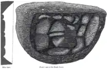 The Kinda tribe's chief god was Kahl, whom their capital Qaryat Dhat Kahl (modern Qaryat al-Faw) was named for.[93][94] His name appears in the form of many inscriptions and rock engravings on the slopes of the Tuwayq, on the walls of the souk of the village, in the residential houses and on the incense burners.[94] An inscription in Qaryat Dhat Kahl invokes the gods Kahl, Athtar al-Shariq and Lah.[95]