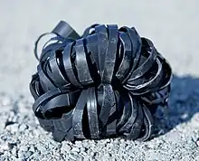 The basse is similar to a bag ball although it's not really a bag. The basse is made with several rubber rings tied together to a round ball with a tight core. Use an old bicycle inner tube or rubber bands. It should be as round as possible, and not bounce in any direction when you hit it. The weight is about 70 – 100 grams.