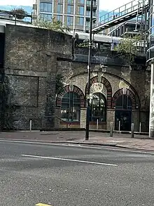 Battersea Park Road railway station in Battersea, South London was opened by the London, Chatham and Dover Railway in 1867. It closed in 1916 along with other inner-London stations on the Main Line.[3] Battersea Park railway station, nearby on a different line from London Victoria, remains open. There is no evidence of the station at rail level, but the bricked-up entrance can be seen under the rail bridge close to Battersea Dogs & Cats Home.