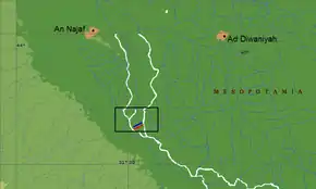 According to modern geography the battlefield lies 25 miles south-east of the Iraqi city of Najaf, and about 4 miles south-west of modern Ash Shinafiyah.[11]