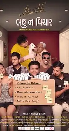 Bau Na Vichar is an Indian Gujarati Comedy-drama film, written and directed by Hrutul Patel, released in 2019.[2] The cinematography was by Suraj Kurade and editing by Rraja Sanjay Choksi. The film stars Bhatt Bhushan, Devarshi Shah, Bhavya Gandhi and Janki Bodiwala in leading roles.[3] The principal photography of the movie was started on 26 October 2018.[4]