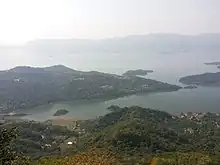 There are no natural lakes in Bilaspur district, but the artificial Gobind Sagar is one of the largest lakes in India. It stores a huge volume of water, which is used for both irrigation and electricity generation.[3] It is formed by the Bhakra Dam, which was completed in 1963. The lake is 90 km long and its total area is 168 km2. About 90% of this area belongs to Bilaspur district; the remainder belongs to Una district.[3] The lake's water level fluctuates. It is designated as a waterfowl refuge, and about 50 species of fish live in its waters. [4] Gobind Sagar is a popular tourist destination,[3] and it is also a site for various recreational activities like fishing, swimming, sailing, rowing, and water-skiing.[4]