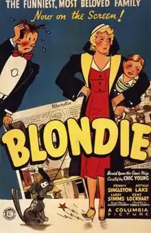 Blondie is a 1938 American comedy film directed by Frank Strayer, based on the comic strip of the same name, created by Chic Young. The screenplay was written by Richard Flournoy. The plot involves the Bumsteads' fifth anniversary, Dagwood trying to get a raise, and Blondie trying to buy new furniture.