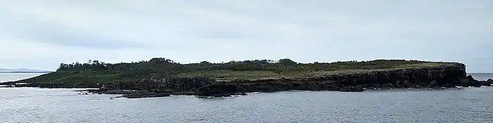The island is tear-shaped, about 1.1 kilometres (1,200 yd) long north to south, and 600 metres (660 yd) wide. It slopes sharply from the cliffs on its eastern, or oceanic, side down to rock platforms at sea level on its west. Much of it is covered by windblown sand supporting, and stabilised by, various vegetation communities.[1] The island was named after Lieutenant Richard Bowen RN. Another Bowen Island, in Canada, is named after Richard's eldest brother Rear-Admiral James Bowen RN.