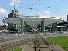 In 1999 to 2000, in preparation for Expo 2000, a local transport terminal was built in front of the station. The inauguration of the installation, which is protected against the weather with a 100-metre-long (330 ft) canopy, was carried out in May 2000. Simultaneously, the first tracks (with an additional standard gauge rail) were laid for the future standard gauge tramway in the area of the station. In local services, it was proposed that lines 1, 2, 3 and 10 of the RegioStadtBahn (regional light rail) would also serve the station, with work starting in about 2014,[9] although this is in doubt. Its first stage would connect the station and Braunschweig North station (Nordbahnhof) with Salzgitter, Goslar, Bad Harzburg, Schöppenstedt, Gifhorn and Uelzen. The RegioStadtBahn would use two unused platforms in the local station, which as yet have no tracks. The connection to the DB network would take place in the immediate vicinity with an on and off ramp from the embankment. In 2005, a new tram link on the Heinrich-Büssing-Ring was opened to the station. It connects the station with the suburbs of Heidberg, Melverode and Stöckheim in the south of Braunschweig. The new route to Stöckheim was commissioned on 15 October 2006.